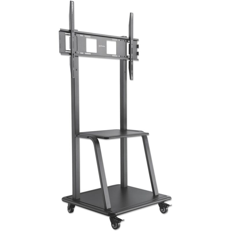 · Carrello/trolley TV multifunzione · Supporto universale da pavimento per TV · Offre una mensola A/V per spazio aggiuntivo · Con ulteriore ripiano per l appoggio di attrezzature o latro materiale · Include ruote bloccabili per garantire maggiore stabilità e un bloccaggio stabile del supporto · Conforme agli standard VESA: 200x200, 300x200, 300x300, 400x200, 400x300, 400x400, 600x400, 800x400, 800x600 · Ideale per supportare schermi da 37 fino a 100 · Relativi carichi supportati: · Schermo: 150 kg · Mensole: 20 kg ciascuna · Altezza della TV regolabile · Dimensioni mensola AV: 554 x 448 x 20 mm · Dimensioni ulteriore mensola: 775 x 675 x 30 mm Contenuto della confezione · Supporto universale da pavimento per TV · Kit di installazione · Manuale d istruzioni