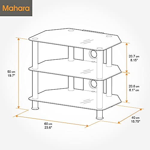 Il ripiano inferiore in vetro è spesso 6 mm e può sostenere al massimo 20 kg