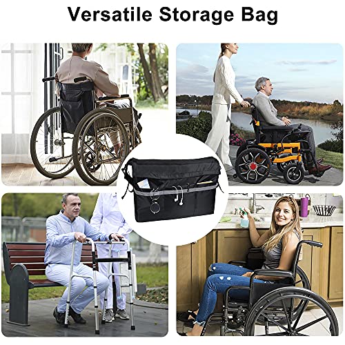SupreGear Borsa per Sedia a Rotelle, Anti-Scratch Oxford Bag Large Capacity con Secure Reflective Strip, Perfetta per Qualsiasi Stile Deambulatori Sedie a Rotelle Elettriche Transport Chair, Black