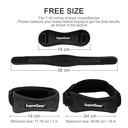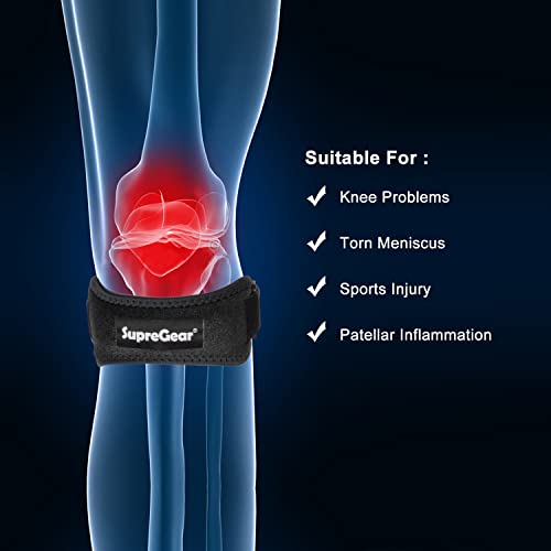 Supregear Ginocchiera (2 Pacchi), Cinturino di Supporto del Tendine Rotuleo Regolabile con Silicone, Cinturino di Supporto per il Ginocchio, Ottimo per la Corsa di Pallacanestro e Pallavolo, Nero