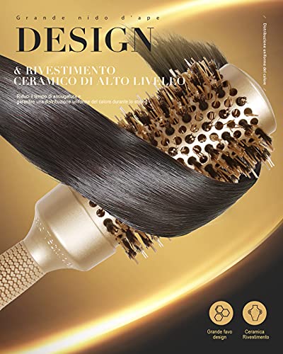 ❤️【La Migliore Spazzola Rotonda】la canna in ceramica si riscalda durante l'asciugatura, contribuendo a bloccare volume e arricciatura, e le prese d'aria consentono all'aria di fluire liberamente, riducendo il tempo di asciugatura. Misura 4 pollici, perfetta per asciugare e acconciare capelli medio-lunghi.