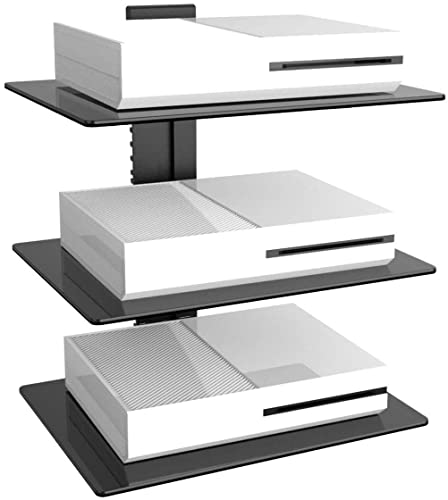 Suptek Supporto da Muro Staffa da Parete Scaffale di Vetro Mensola Multimediale per Lettori DVD, Cavo cassette, Giochi console, TV Accessori Con 3 Ripiani Sospeso in Vetro Nero CS303
