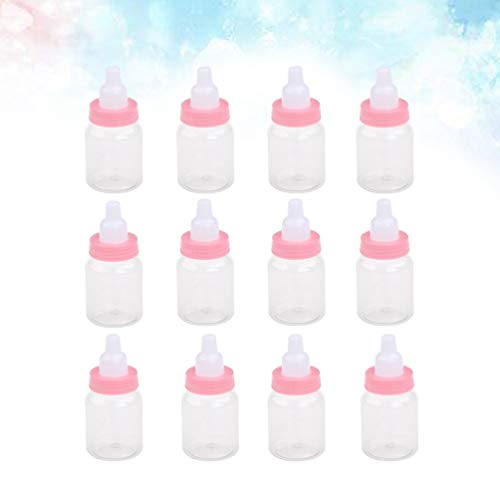 SUPVOX 24Pcs Bottiglie di Caramelle Mini Bottiglie di Neonati Biberon Doccia Favore Mini Bottiglia di Caramelle di Plastica Ragazzo Ragazza Neonato Battesimo Decorazione Festa di Compleanno (Rosa)