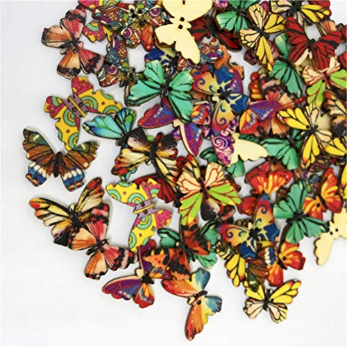SUPVOX 50Pcs Bottoni in Legno Farfalla Decorativa Forma 2 Fori Bottone in Legno per Fai-da-Te Cucito Abbigliamento 25x18mm