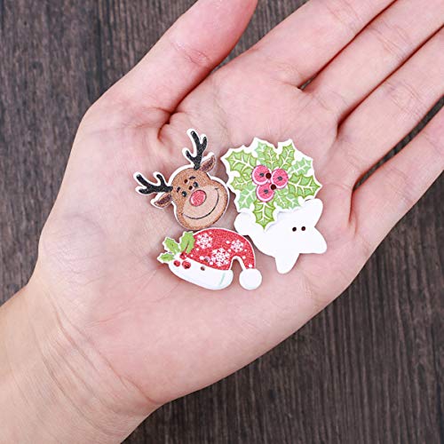 SUPVOX Bottoni in Legno Bottoni Legno Natale Forma Renna Cappello di Babbo Natale Campanelle Natalizie Poinsettias Bottoni Decorativi per Bambini 50 Pezzi