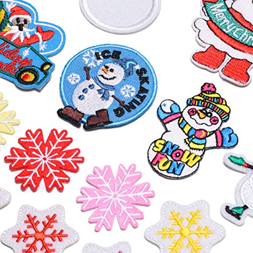 SUPVOX 34 pezzi di toppa natalizia termoadesiva con Babbo Natale, pupazzo di neve e neve ricamata, motivo ricamato, per feste di Natale, feste, cappello di stoffa, decorazione fai da te