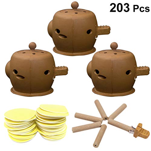 SUPVOX 3 Set Strumento di Massaggio di Agopuntura con Pentola per la Moxibustione e Moxa e Adesivo Spugna per La Terapia Della Medicina di Moxibustione Della Moxa