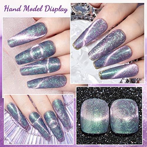 Supwee Smalto gel magnetico a conchiglia, smalto gel per unghie viola effetto perla 9D Smalto gel per unghie a occhio di gatto Glitter Sparkle Magnet Nail Gel Soak Off UV Gel Varnish