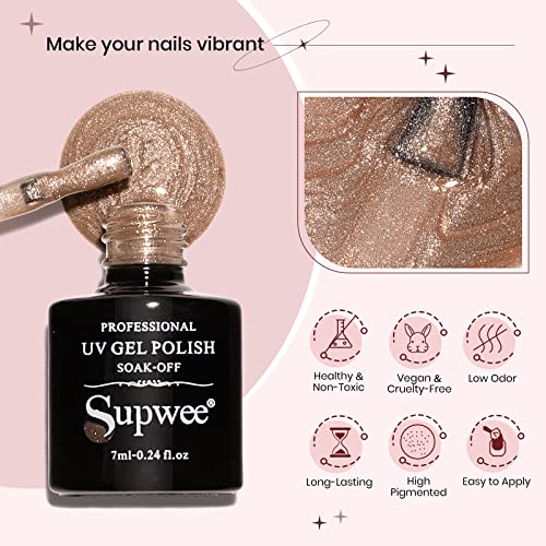 Supwee Cat Eye Gel Smalto Set 9D Wide Cat Magnetico gommalacca Smalto Kit 6 Colori Free MagnetStick Glitter Effetto Frullato Smalto UV LED