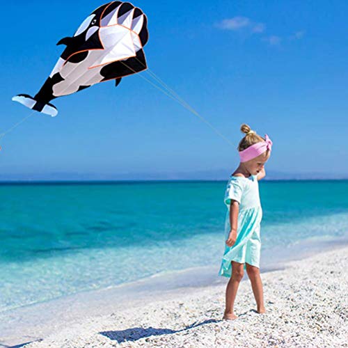 SUPYINI Aquilone,aquilone delfino balena assassina 3D,aquilone morbido,tessuto in nylon morbido,aquilone di animazione,aquilone gonfiabile,aquilone giocattolo allaperto,Bianco e nero 120 * 215 cm