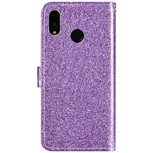 Surakey Cover Compatibile con Huawei P20 lite Custodia Flip PU Pelle Glitter Bling Paillettes Case Libro Portafoglio Cover con Supporto Porte Carte Anti-Scratch Custodia per Huawei P20 lite,Viola