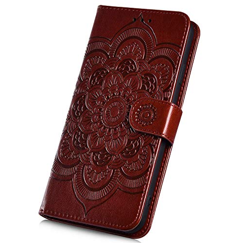 Surakey Cover Compatibile con Huawei P30 Pro Flip Libro Portafoglio Pelle Case Modello di Mandala con Funzione Supporto e Porte Carte Chiusura Magnetica Anti-Scratch Goffratura Custodia,Marrone