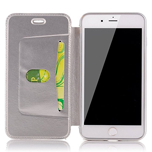 Surakey Cover Compatibile con iPhone 6 Plus/6S Plus Glitter Bling Flip Portafoglio Custodia in PU Pelle + Trasparente Silicone Back Case Lusso Ultra Sottile Cover a Libro con Tasche per Carte,Argento