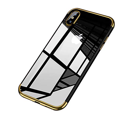Surakey Cover Compatibile con iPhone X, Ultra Trasparente HD Crystal Clear TPU Silicone Cover Bordo Placcatura Colorata Soft Touch Protettiva Skin Antiurto Ultra Sottile e Morbida Custodia,Oro