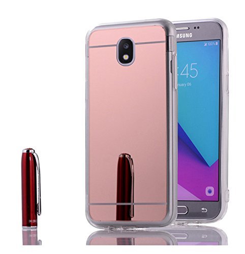 Surakey Cover Compatibile con Samsung Galaxy J5 2017, Effetto Specchio Custodia in Silicone Brillante Colore di Placcatura Lusso Mirror Case TPU Bumper Ultra Sottile Protettiva Cover,Oro Rosa