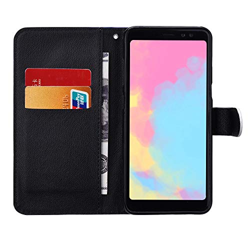 Surakey Cover Compatibile con Samsung Galaxy A8 2018 Flip Libro Portafoglio Pelle Case 3D Pittura Creativa con Funzione Supporto e Porte Carte Pieghevole Anti-Scratch Custodia,Lupo della luna