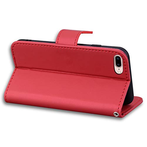 Surakey Cover per iPhone 7 Plus/8 Plus,Custodia Flip a Libro Portafoglio in PU Pelle Ragazza Cartoon Cover Chiusura Magnetica con Porta Carte Funzione Stand per iPhone 7 Plus/8 Plus,Gatto,Rosso