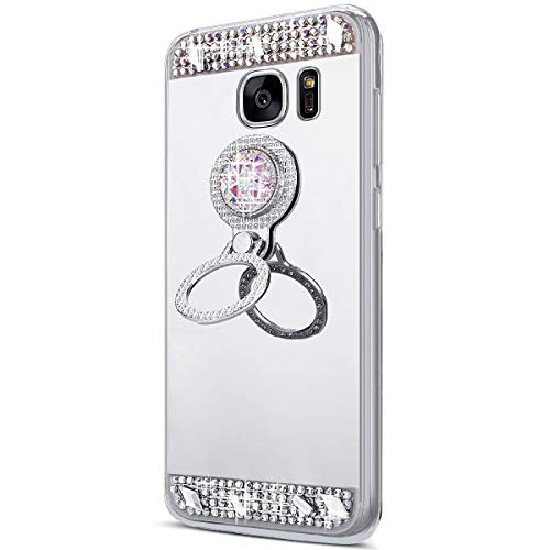 Surakey Cover Samsung Galaxy S7 Edge, Specchio Silicone Morbido Cover con Anello Supporto Glitter Bling Strass Chic Mirror Case Ultra Sottile Protettiva Custodia per Galaxy S7 Edge,Argento