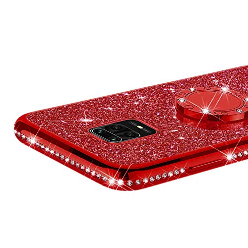 Surakey Cover per Xiaomi Redmi Note 9S,Custodia Glitter Morbida Silicone Case Bling Diamante Case con Strass Anello Supporto Ultra Slim TPU Bumper Protettiva Cover per Xiaomi Redmi Note 9S,Rosso