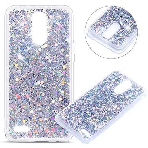 Surakey Custodia LG K10 2017, Cover in Silicone Morbido con Brillantini/Glitters,Flessibile Gomma Soft Protettiva Skin Paillettes Bling Ultrasottile Cover per LG K10 2017,Argento