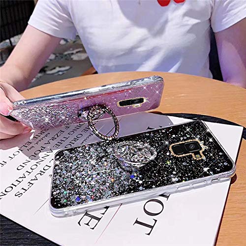 Surakey Custodia per Samsung Galaxy A6 2018 Glitter Trasparente Cover in Silicone con Bling Strass Anello Supporto Morbida TPU Bumper Ultra Sottile Brillantini Cover per Samsung Galaxy A6 2018,Rosa