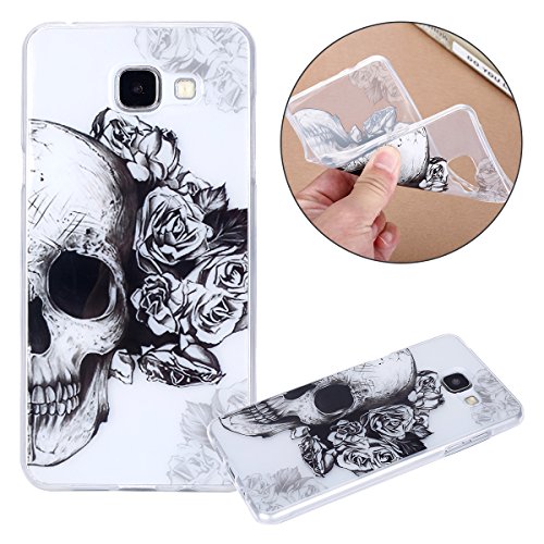 Surakey Samsung Galaxy A5 2016 Cover, Protettiva Custodia Silicone Trasparente con Stampa Disegni Fiori Antigraffio TPU Paraurti Ultrasottile Gomma Morbida Cover per Samsung Galaxy A5 2016,Teschio