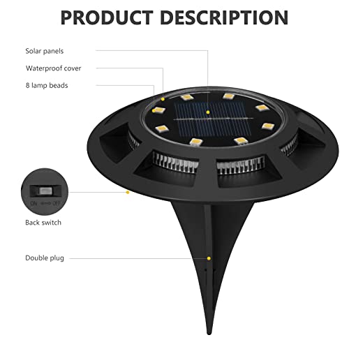 【Facile da installare】 Queste Lampada Solare da Esterno possono essere a filo con il terreno. Basta semplicemente accendere l'interruttore sotto il cappuccio e spingere il paletto nel terreno. Se il terreno è troppo duro, non torcerlo o colpirlo con un martello .Cerca di ammorbidire il terreno con acqua e scava una buca adatta per lo spuntone.