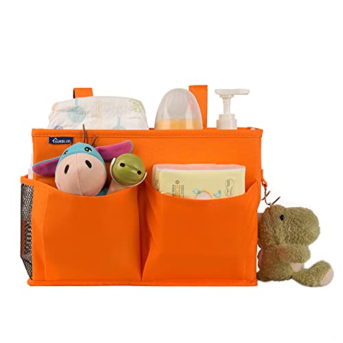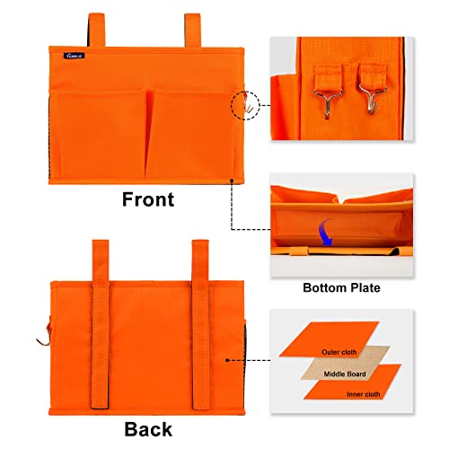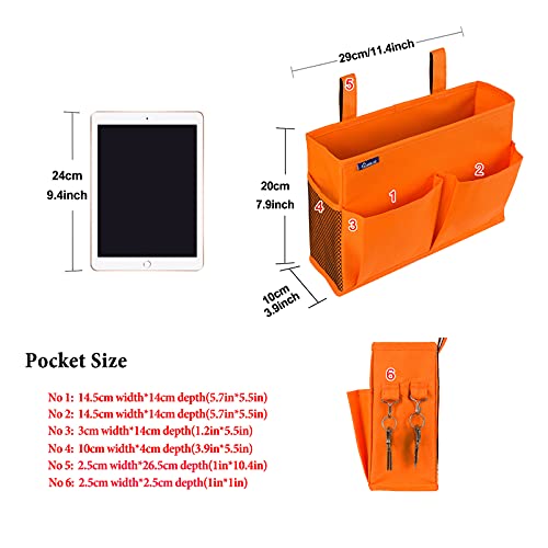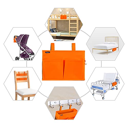 Surblue Comodino Caddy Appeso Letto Organizer Borsa Portaoggetti 4 Tasche e 2 Ganci Piccolo-Arancione