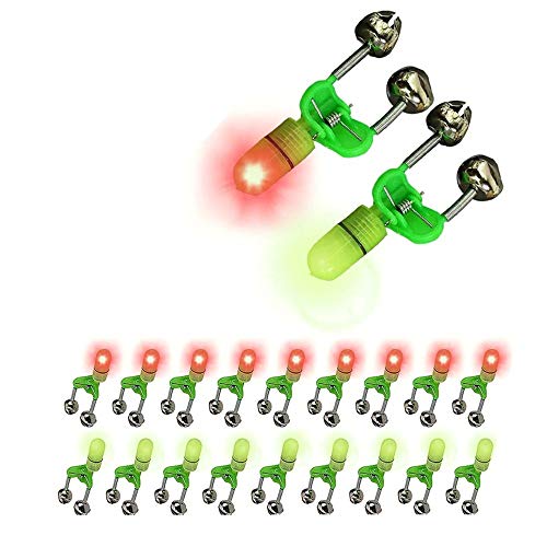 Surenhap - 20 campanelle da pesca a LED, allarme per canna da pesca, con doppia campana, indicatore di allarme