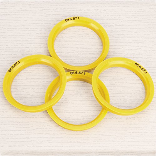 SurePromise 4 Pcs Anelli di Centraggio, Anello Distanziatore per Cerchi in Alluminio 66.6-57.1 per Molti Modelli di Audi VW Seat Skoda Mercedes BMW Giallo