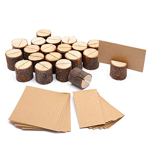SurePromise Segnaposto Legno Rustico,20 Pezzi Segnaposto Legno Forma Tronco Supporto Numero Posto Titolare Portafoto Decorazione Tavolo Bomboniera Matrimonio Memo Holder
