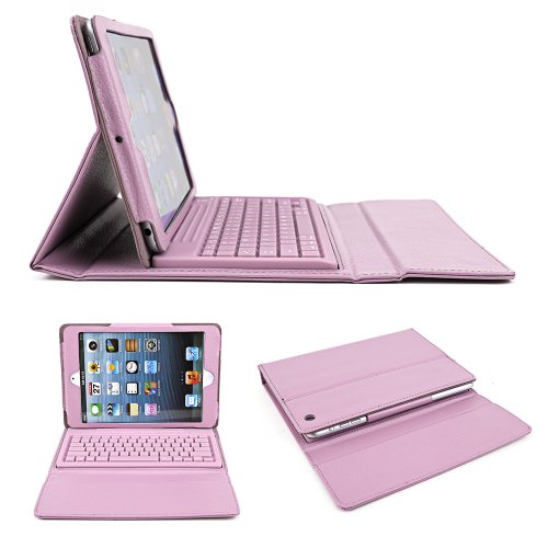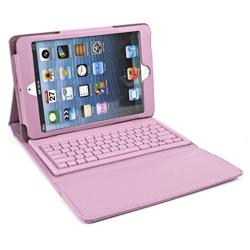 SurePromise One Stop Solution for Sourcing Rosa PU Pelle Custodia Cover con Supporto Integrato, Tastiera Bluetooth Senza Fili per iPad Mini/Mini 2/iPad Mini con Display Retina 2