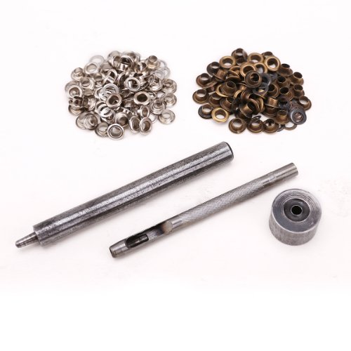 SurePromise 4mm Kit di strumenti per fori per occhiello per fori artigianali in pelle fai-da-te + 50 occhielli d'argento + 50 occhielli bronzati