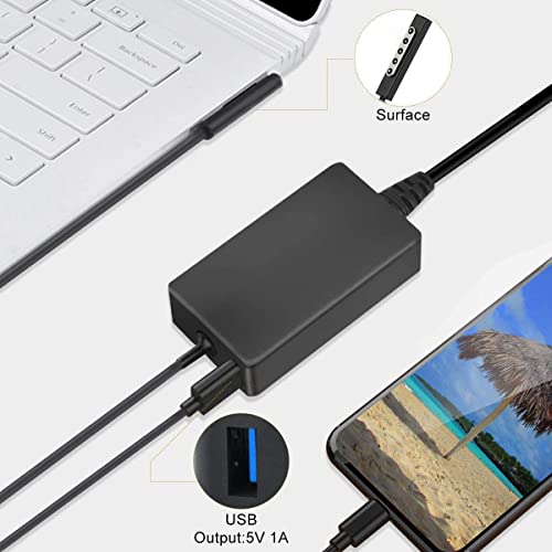 Surface Caricatore,Adattatore di Alimentatore 48W 12V 3.6A per Microsoft Surface RT/2 Caricatore,Surface Pro 1/2 Caricatore 1536 con Una Porta USB e Un Cavo di Estensione