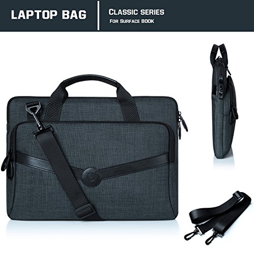 Surface Book i7 Custodia,Surface Book Custodia, Custodia Surface Book (2015), Fyy® [Serie Funzionale Eccellente] Custodia di Cuoio Premio della Copertura del Basamento con Slot per Schede, Supporto di Nota, a Mano di Qualità Strap e Cinghia Elastica per Surface Book (2015) Nero