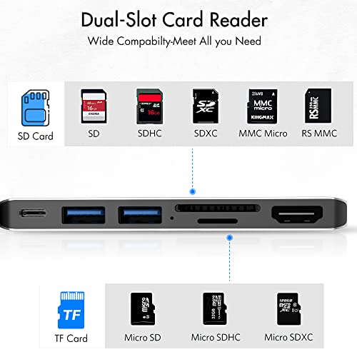 ▶【6 In 2 Docking Station Surface Pro 9】- Progettato appositamente per Surface Pro 9, che converte la connessione 2 USB-C in 6 porte (2 USB 3.0, 4K HDMI,USB-C Trasferimento dati, lettore di schede SD e TF) (*Nota 1: questo dock USB per Surface Pro 9 non si adatta molto bene a Surface Pro 9 se utilizzi una custodia protettiva. *Nota 2: non compatibile con Surface Go/ Surface Pro 3/4/5/6/7/8)