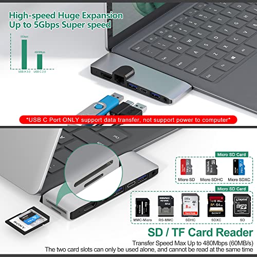 Surface Laptop 5 Hub USB Accessori con 4K HDMI | 100Mbps Ethernet | USB3.0 | Tipo C Data Sync | Lettore di Schede SD TF Card | 3.5mm Audio Adattatore per Microsoft Surface Laptop Go2|Go|5|4|3