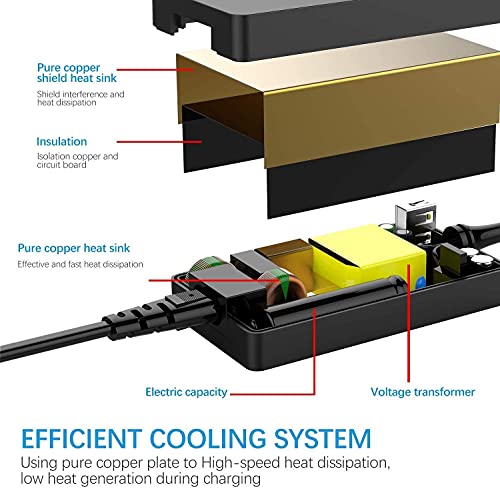 Prestazioni, sicurezza, affidabilità: cavo di ricarica per caricatore per 6 caricatori, certificato da sicurezza. Dispone di diversi dispositivi di protezione integrati che proteggono da sovracorrente, sovraccarico, cortocircuito e surriscaldamento. La tecnologia avanzata garantisce la sicurezza dell'alimentatore e del laptop ad esso collegato. Peso ridotto, molto facile da trasportare, facile da usare. Alta efficienza, sicuro e più affidabile.
