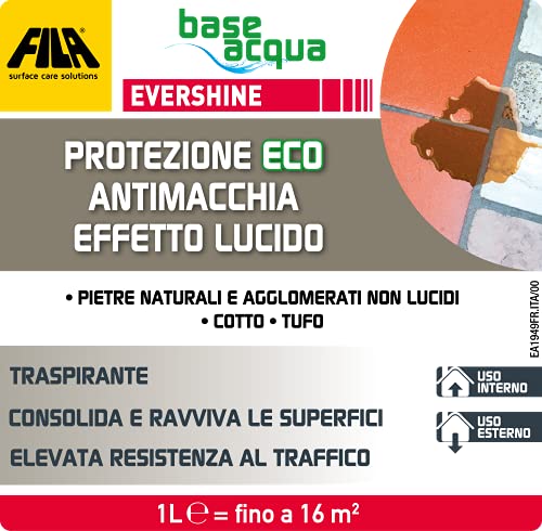 FILA Surface Care Solutions EVERSHINE Protettivo Eco Idro ed oleo Repellente: Antimacchia a Base Acqua per Superfici Interne ed Esterne ad Effetto Lucido, Incolore, 1 Litro