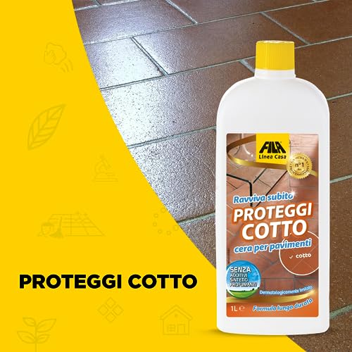 FILA Surface Care Solutions, PROTEGGI COTTO, Cera Pavimenti per Superfici in Cotto, Protegge i tuoi Pavimenti in Cotto e Dona una Piacevole Finitura, Ravviva Cotto in una Sola Passata, 1L
