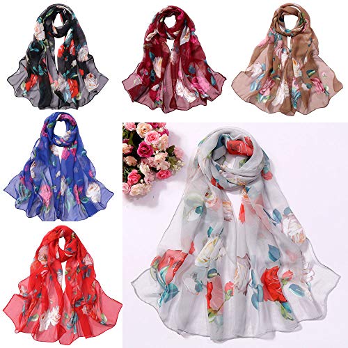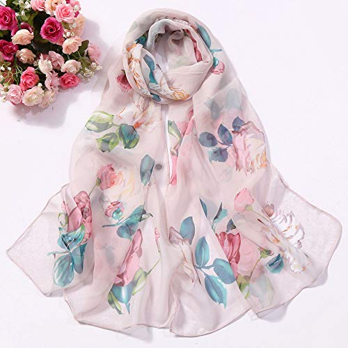Surfiiy Sciarpe da Donna Elegante Scialle Chiffon Sciarpa Invernale Signore Lunga Stampa di Fiori di pesco e Rose Scialle Frange Cotton In Maglia Nappe Scarf (Rosa)