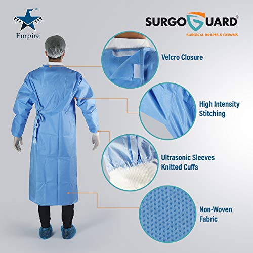 1 x SurgoGuard AAMI Level 4 EN13795-1: 2019 Abito chirurgico rinforzato sterile 43 Gsm AS + rinforzo laminato 30PE (grande) (1 pezzo abito fornito)