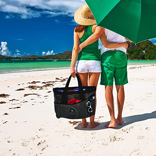 Red Suricata Borsa da spiaggia in rete con cerniera - Borsa da spiaggia extra large - Borsa da piscina, Nero / Nero, X-Large