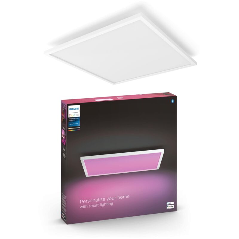 Emettendo un bagliore morbido e diffuso di luce colorata, il pannello del soffitto Surimu si posiziona a filo con il soffitto dopo una facile installazione. SPECIFICHE -Colore Bianco -Materiale Metallo e materiali sintetici -Indice di resa cromatica (CRI) 80-Altezza 4,8 cm -Lunghezza 60 cm -Larghezza 60 cm -Durata fino a 25.000 ore -Totale emissione in lumen apparecchio (nascosto) 4.150 lm -Emissione in lumen della lampadina inclusa 4.150 lm -Sorgente luminosa equivalente a una lampadina tradizionale da 100 W -Tecnologia lampadina LED 240 V -Colore della luce 2000-6500 K WHITE AND COLOR -Tensione di rete 220-240 -Apparecchio dimmerabile Sì -LED Sì -LED integrato Sì -Completo di lampada wattaggio 60 W -Wattaggio massimo lampadina sostitutiva 100 W -Codice IP IP20 -Classe di protezione Classe I -Emissione in lumen a 2.700 K (impostazione predefinita) 3.350 lm -Emissione in lumen a 4.000 K 4.150 lm Con l'app Bluetooth di Hue puoi controllare le luci intelligenti all'interno di una