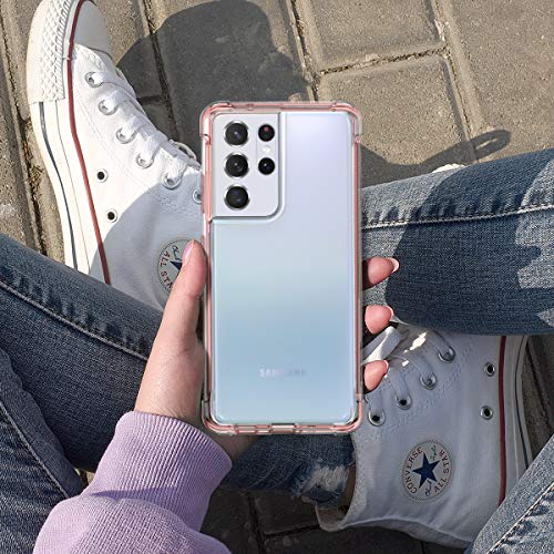 SURITCH Cover Samsung Galaxy S21 Ultra 6,8 pollice Trasparente Custodia Antiurto 360 Gradi [Ultra Hybrid] Silicone Oro rosa Bumper e PC Pannello Posteriore, Protezione Totale con protezione fotocamera