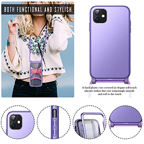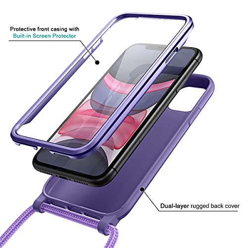 SURITCH Custodia con Cordino per iPhone 11 Silicone Custodia Protezione con Schermo Integrata Antiurto Indistruttibile Bumper Rugged Case per iPhone 11 6.1" (Viola)