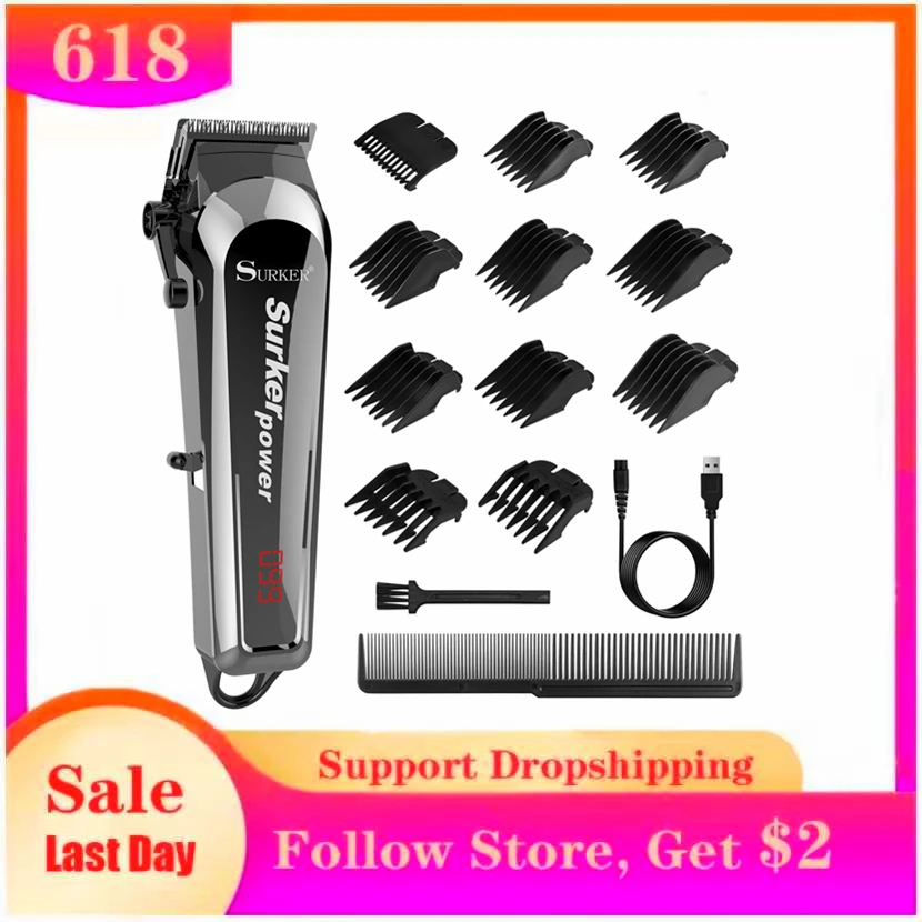 Surker Electric Hair Clipper Powerful Hair Trimmer Cordless Baber Rechargeable Hair Cutting Machine For Men