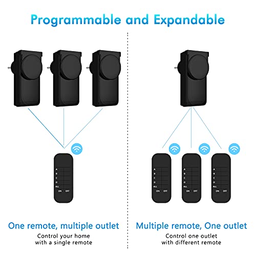 Risparmio energetico Ridurre il consumo energetico delle apparecchiature di standby notturni e prolungare la degli elettrodomestici. La presa rimane spenta anche dopo un'interruzione di corrente per risparmiare energia e costi di elettricità. Il consumo energetico in standby della presa è solo 0,6 W..Product List 1 x ricevitore di presa del telecomando 230V 1000W, 1 x trasmettitore di telecomando, 2 x batteria 3V CR2032 gratuita, 1 x manuale utente.