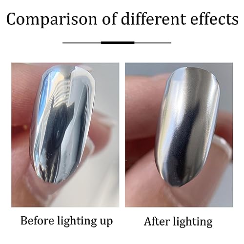 Forte effetto specchio: questa unghia a specchio ha un colore lucido delicato e affascinante. L'effetto colorante è veloce e nitido, dandogli un effetto speculare argenteo di prima classe. Struttura metallica lucida a specchio. Argento a specchio con effetto anti-argento più forte e nessuna granulosità.