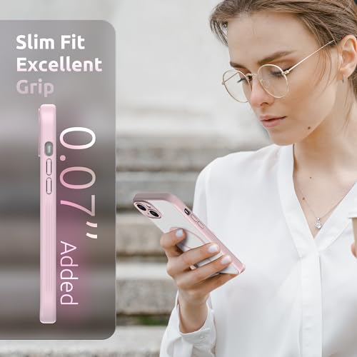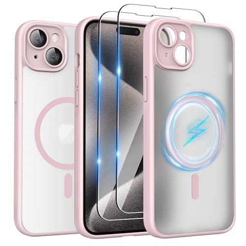 SURPHY Cover Magnetica per iPhone 15 plus con 2 Vetro Temperato(6,7''), Compatibile iphone 15 plus case con Magsafe e Protezione Fotocamera, Custodia Traslucida Posteriore Sottile Antiurto, rosa